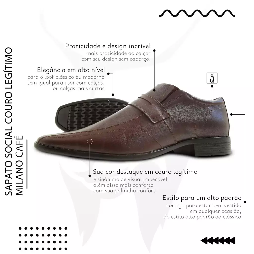 Se você procura um sapato que una o melhor da moda masculina com qualidade e praticidade, o Sapato Social Masculino Café em Couro Legítimo Milano é a escolha ideal. Ele é a representação perfeita da elegância contemporânea e vai elevar o seu estilo a outro patamar. Garanta o seu par agora mesmo e esteja pronto para se destacar em qualquer evento ou ocasião.