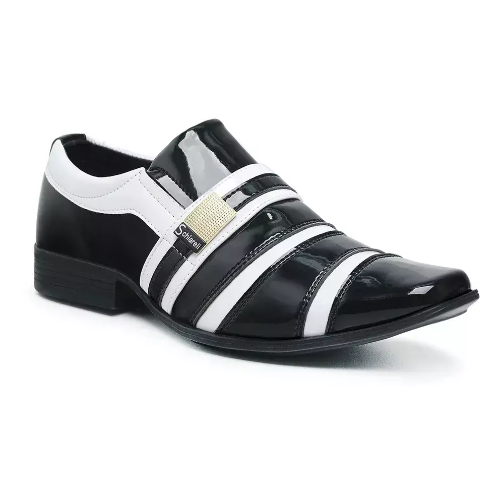 Sapatos Masculino Social Design Sofisticado Moderno duas Cores Verniz Sintético Alto Brilho Fácil Calce 853